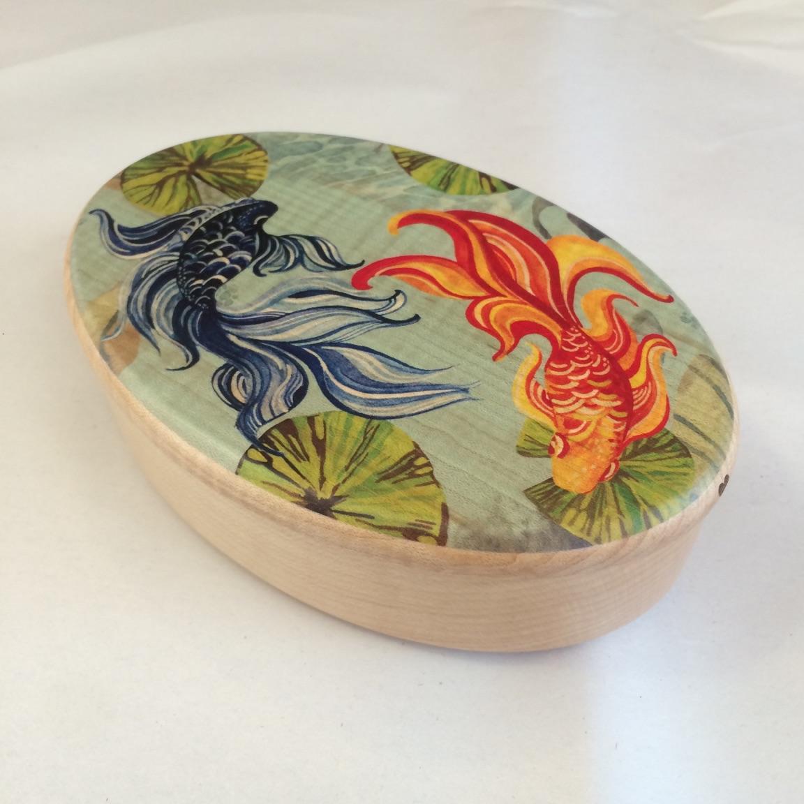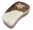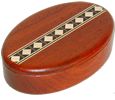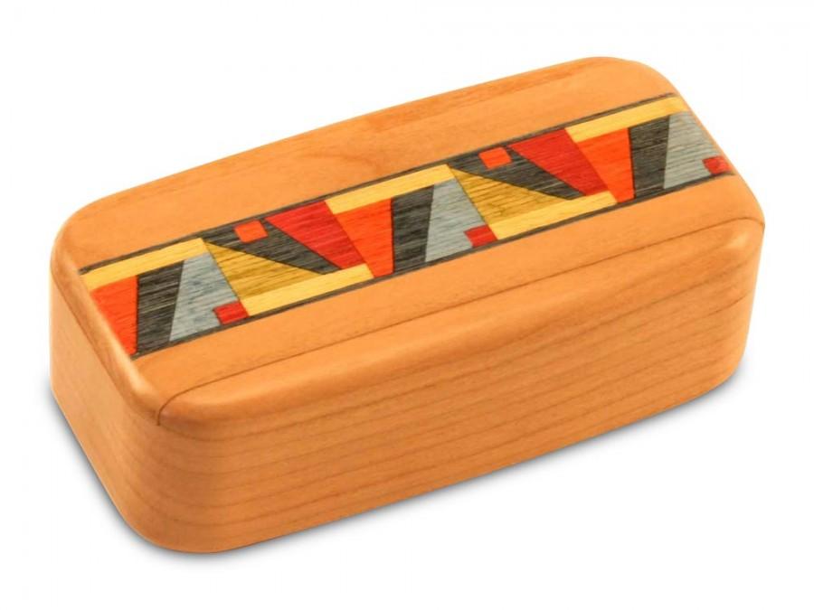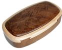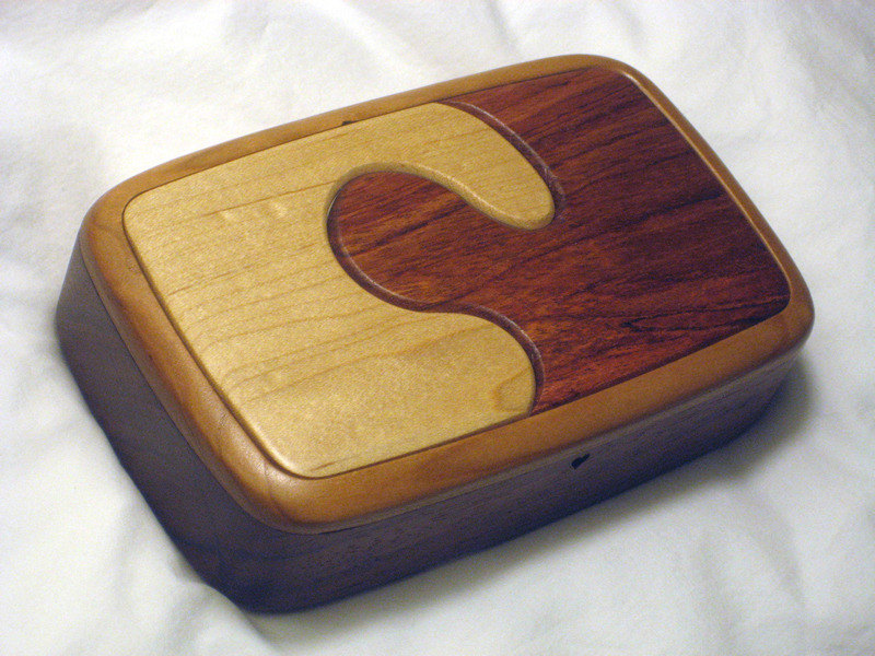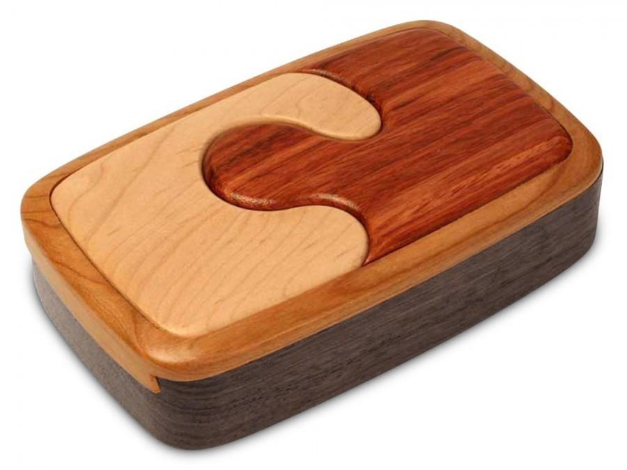 All the puzzle boxes shown below are made by Heartwood Creations. Each has a locking mechanism, making it almost impossible to open without instructions. These are the ones that you either spin, rock, or turn in a variety of maneuvers in order to remove the lids. Each comes with the instructions to open them.